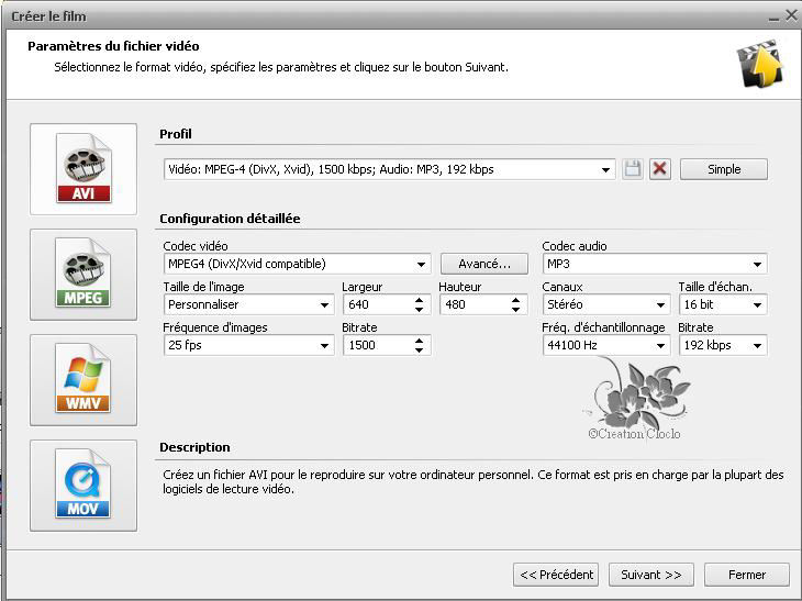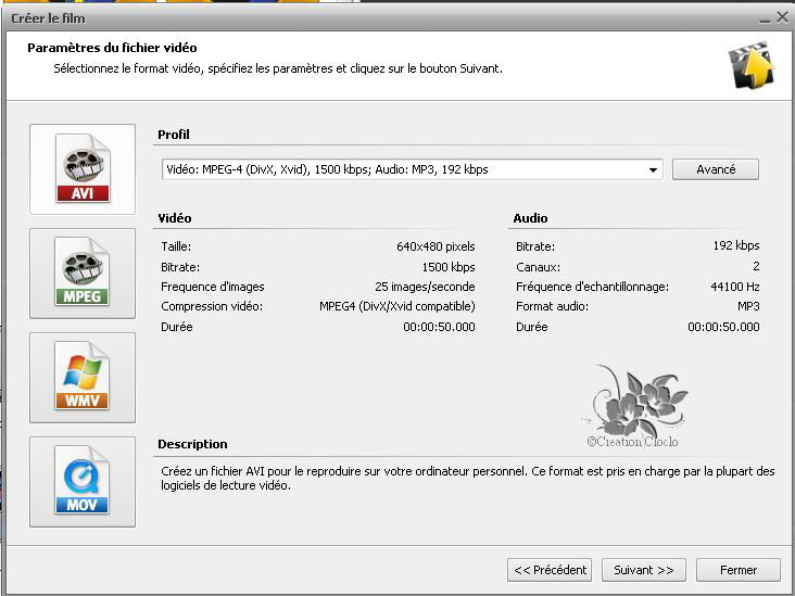 vignette représentant le format d'enregistrement souhaiter et dans la