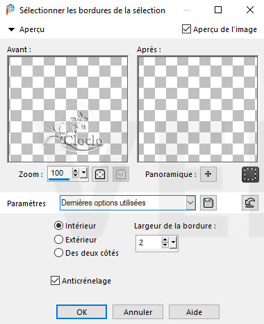 les bordures de la sélection